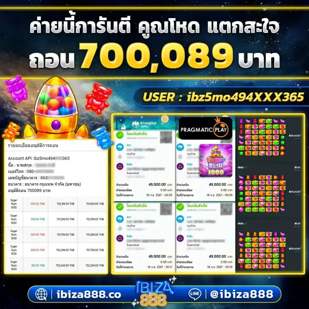 เว็บ ibiza888 จ่ายจริง มีรีวิวและหลักฐานการโอน จากลูกค้าตัวจริง จ่ายทุกบิล บิลล้านก็จ่าย
