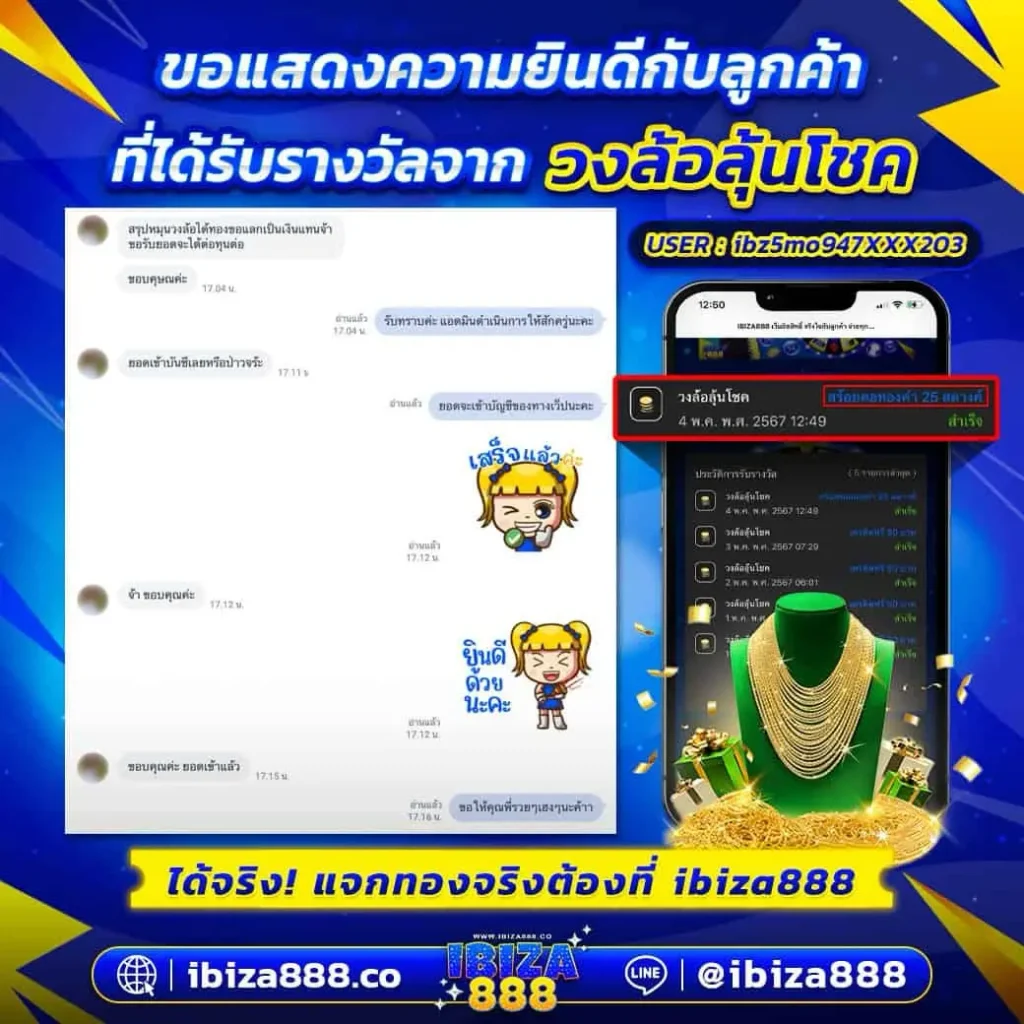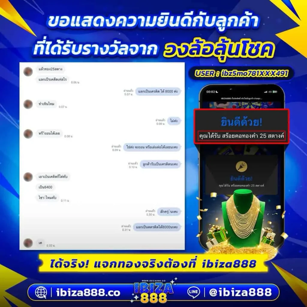 ขอขอบคุณลูกค้า ibiza888 ทุกท่าน ที่ได้เข้ามาใช้บริการทางเว็บของเรา